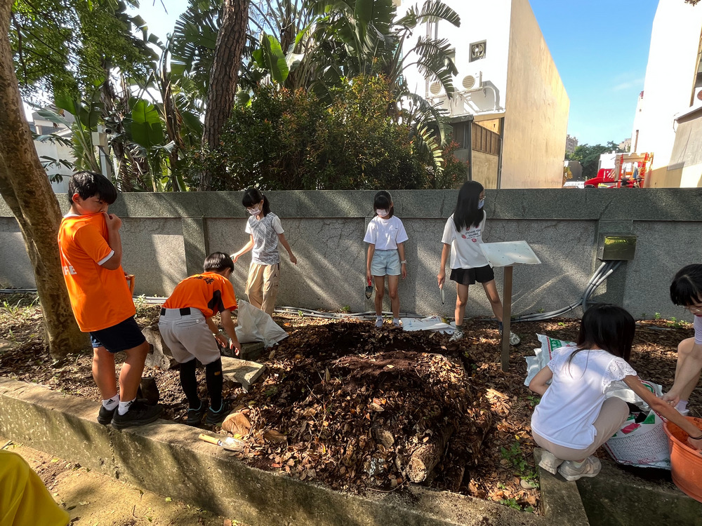 在學校復育甲蟲的棲地,需要有甲蟲一生所需要的各種環境才能完成復育,因此甲蟲復育棲地需要有經過落葉堆肥的腐植土、還有成蟲所需的樹木,例如光臘樹。配合獨角仙一生中的幼蟲期所需要的腐植土,我們利用落葉堆肥來製作,另外,因為菌水(環保酵素)可以加速腐化反應,因此我們製作環保酵素。為了清除落葉及製作腐植土,我們學校購置了奧地利堆肥箱也用圍網架設了落葉堆肥區,還加裝了噴灌灑水系統,除了消化學校大量的落葉,也能快速的產出孕育甲蟲所需要的,鬆軟的腐植土。我們還請學校廚房將每日烹煮營養午餐前產生的大量生廚餘,逐日放入甲蟲復育區,除了加速落葉分解,也能增加腐植質的含量,加上學生們利用午休時間努力的在校內土地太硬的地方鬆土,這樣做除了對獨角仙的幼蟲有莫大的幫助,也讓學校大量的生廚餘廢棄物有了去處,降低了生廚餘運送及處理的費用和汙染。落葉和生廚餘堆肥後產生的腐植土,不但是甲蟲幼蟲的棲地,還可以讓學校許多貧瘠硬化,無法吸水的土壤獲得改善,恢復土壤的健康與孕育動植物的生命力。