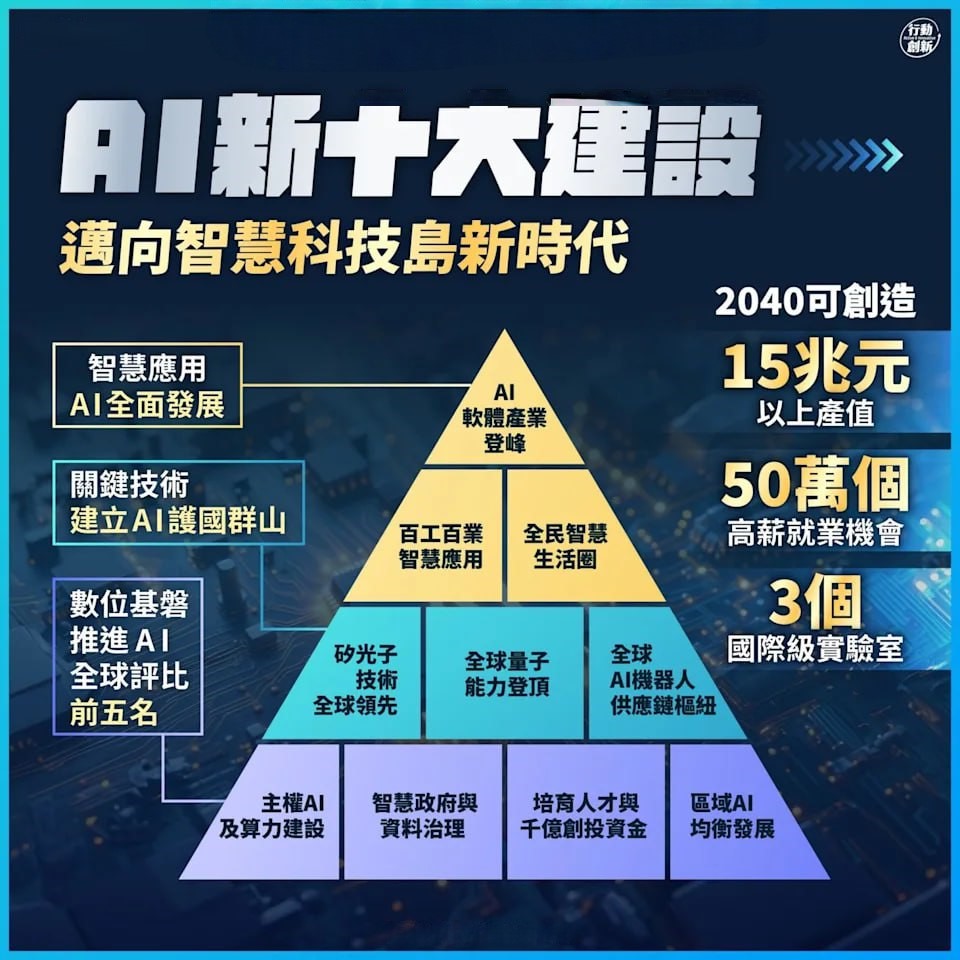 - AI技術驅動台灣未來,政府政策力推AI新十大建設